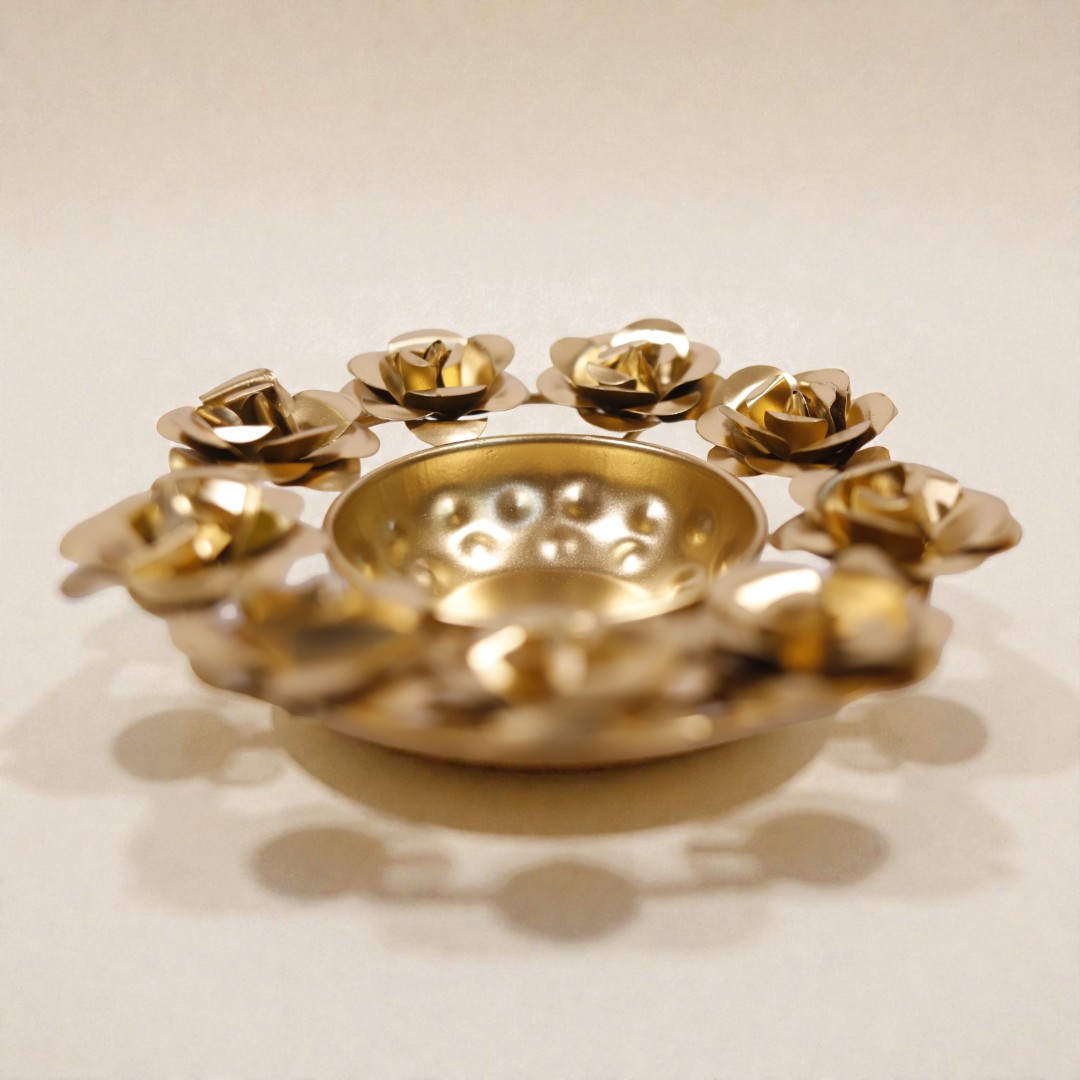 Perfect for both traditional and contemporary settings, this tealight holder becomes an instant statement piece wherever placed. Use it on coffee tables, sideboards, festive rangoli setups, wedding décor, dining tablescapes, or as a highlight in your pooja room. The golden roses add a timeless charm, making it ideal for Diwali, housewarmings, anniversaries, and luxury gifting.