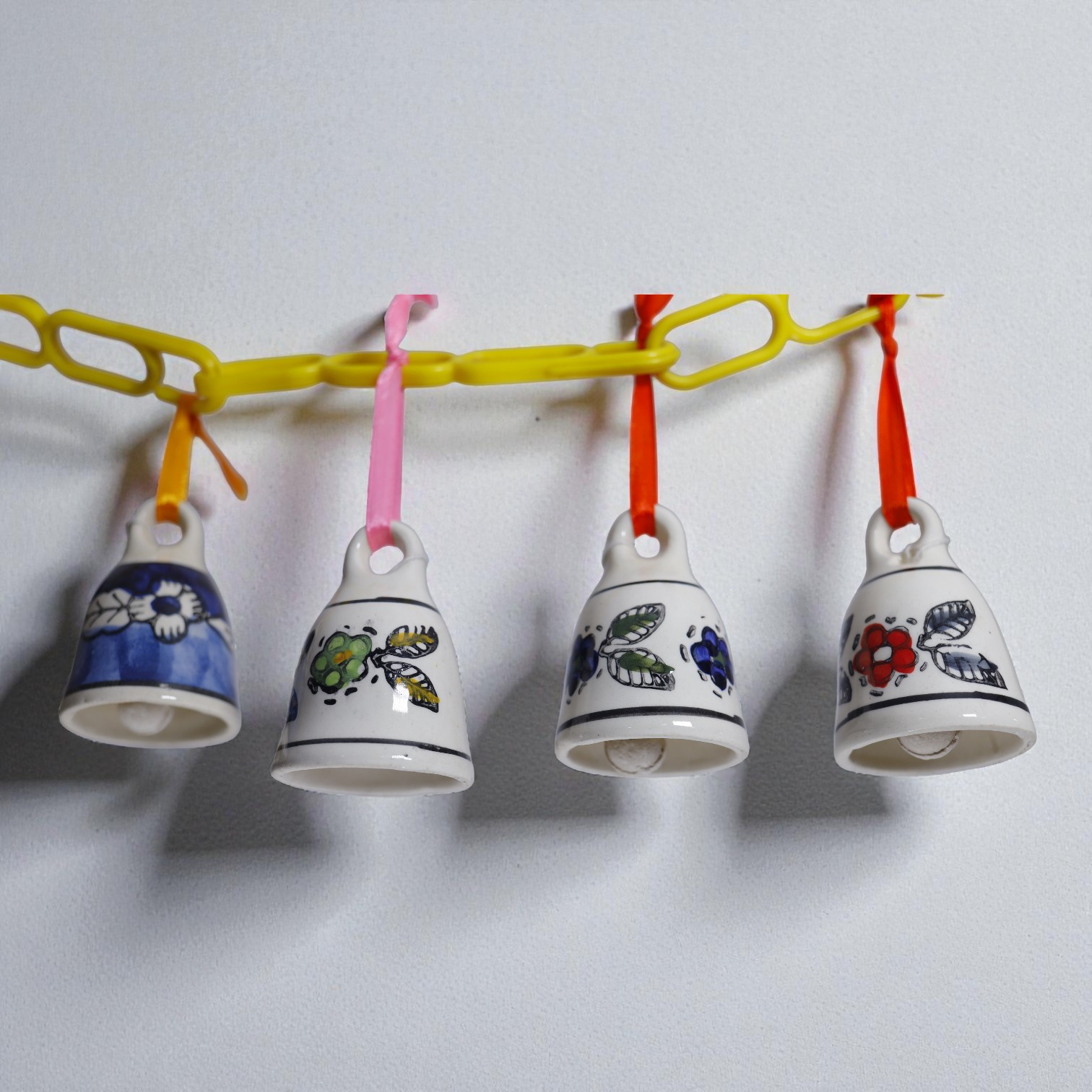 Floral Vintage Ceramic Hanging Bells – Hand-Painted Artisan