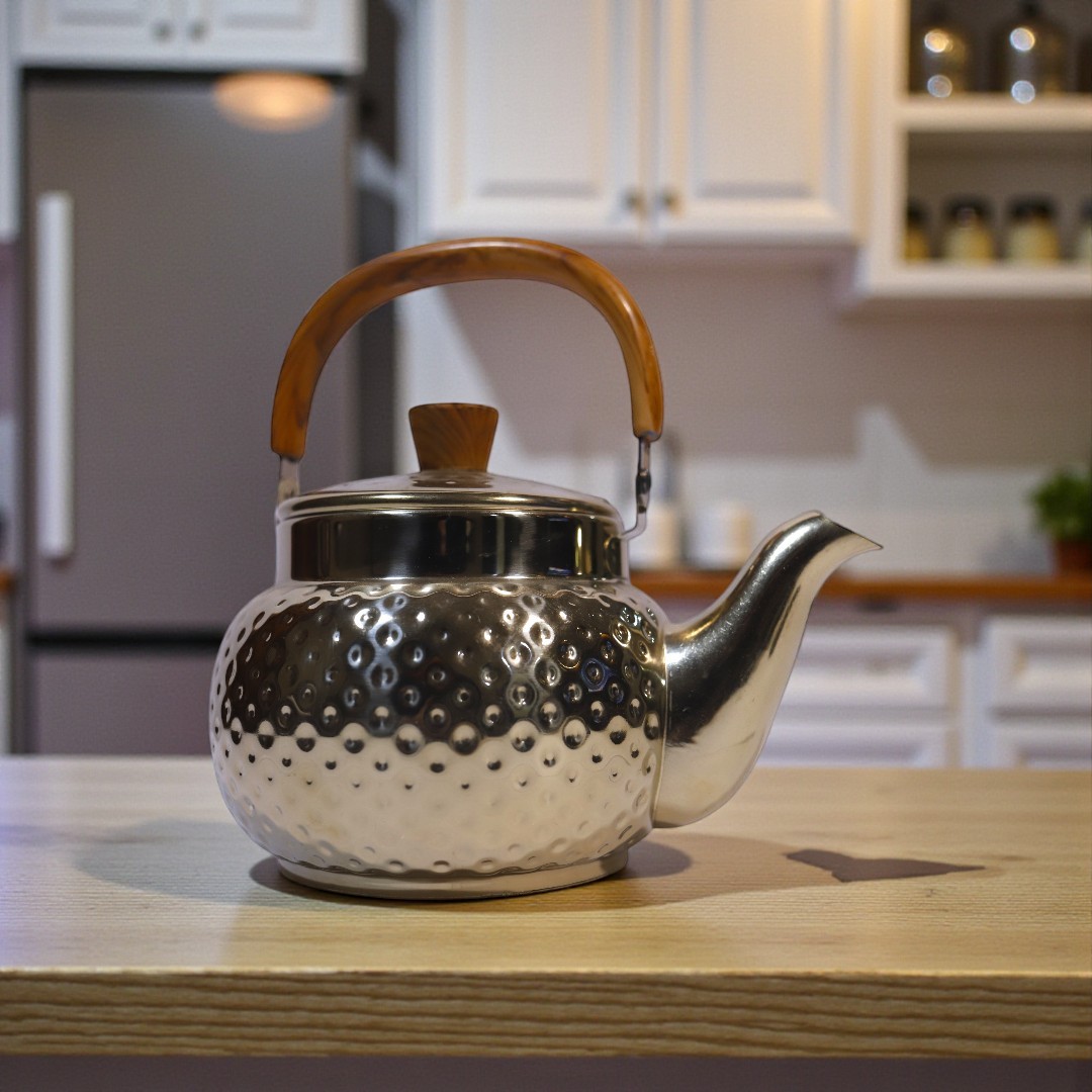 Elevate your tea-time rituals and kitchen aesthetics with this Hammered Stainless Steel Kettle with Wooden Handle, a luxurious blend of traditional craftsmanship and modern refinement. Designed for homeowners who appreciate both function and beauty, this kettle is crafted from premium stainless steel and finished with a striking hammered texture that reflects light elegantly from every angle.